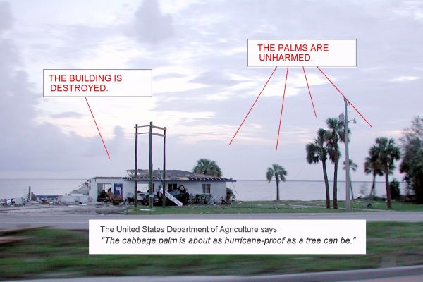 These photos prove why. First, these palms didn't need any trimming to survive this violent storm. And second, Hurricane Charley couldn't strip their fronds. It seems the name "Hurricane Cut" is an unfounded invention by someone who really didn't know anything about palm trees!