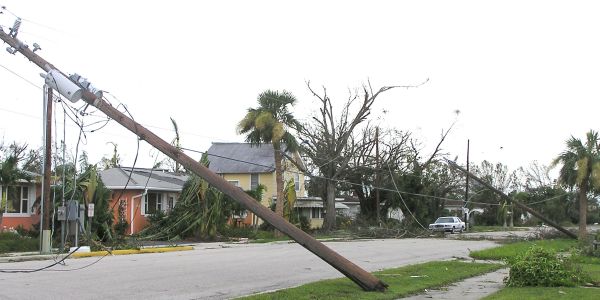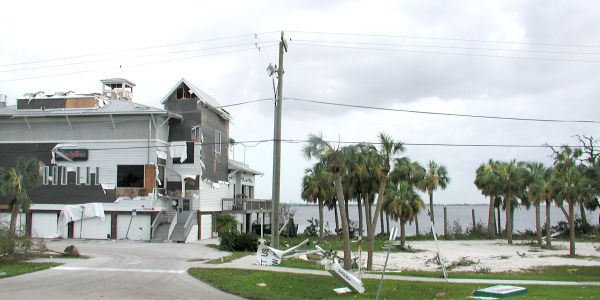 Around them, oaks, pine and banyan trees were stripped of leaves, had branches ripped away, or were split and uprooted. Buildings lost their roofs and windows, power poles were snapped, and loose sheet metal flew everywhere. Some buildings collapsed. These palms didn't even lose fronds. Even the palms at the water's edge, where there was nothing to buffer the full force of the wind are unscathed.